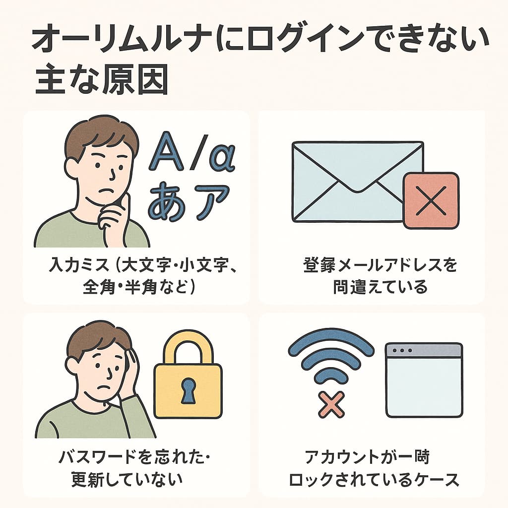 本記事では、オーリムルナのログイン手順に加え、ログインできない主な原因や対処法をわかりやすくまとめています。