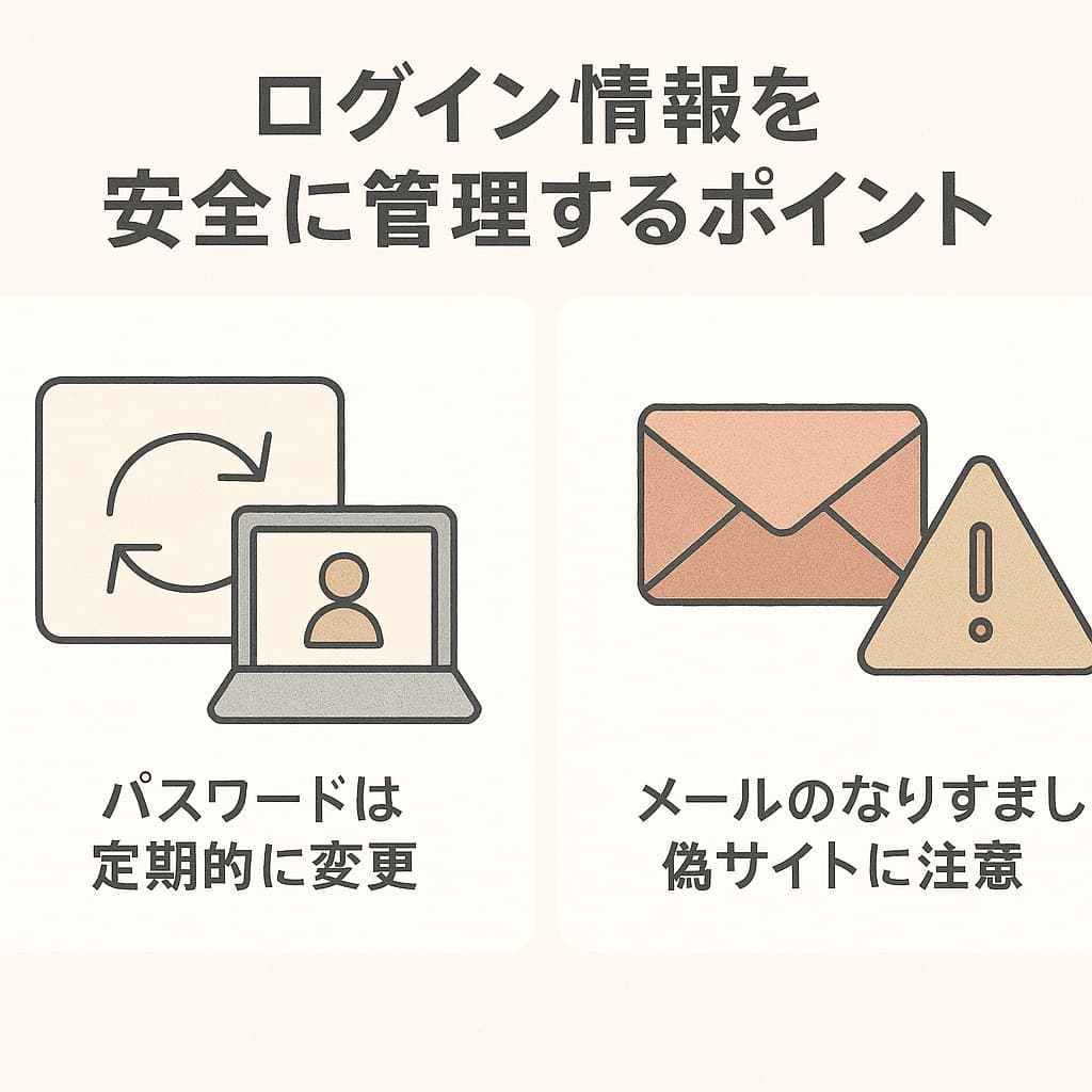 ログイン情報を守るためには、「公式サイトからのアクセス」「正しいURLの確認」を徹底することが最も効果的です。