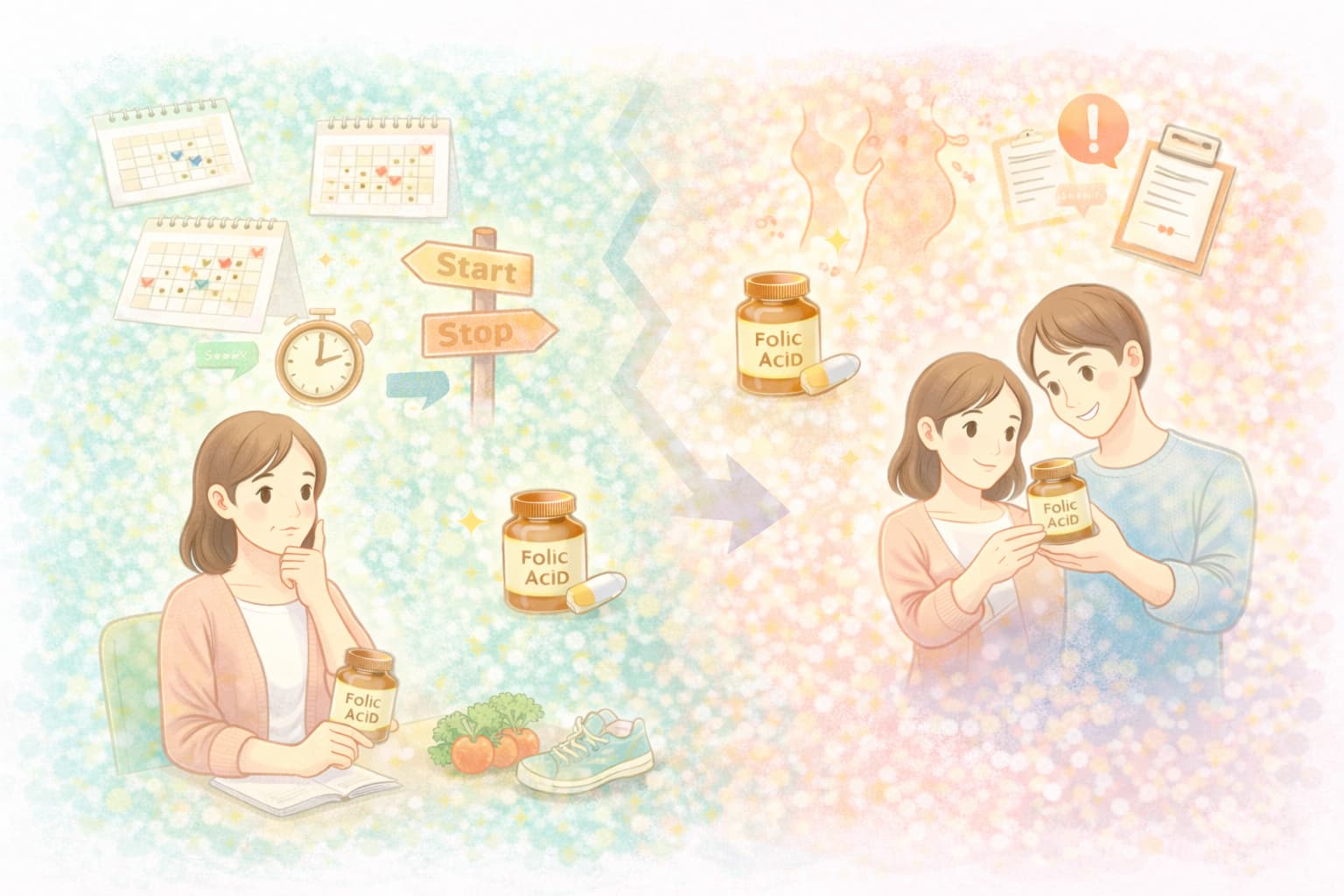 時期に関する情報を時系列で整理し、自分の状況に当てはめて考えることで、葉酸サプリについて冷静に理解しやすくなります。