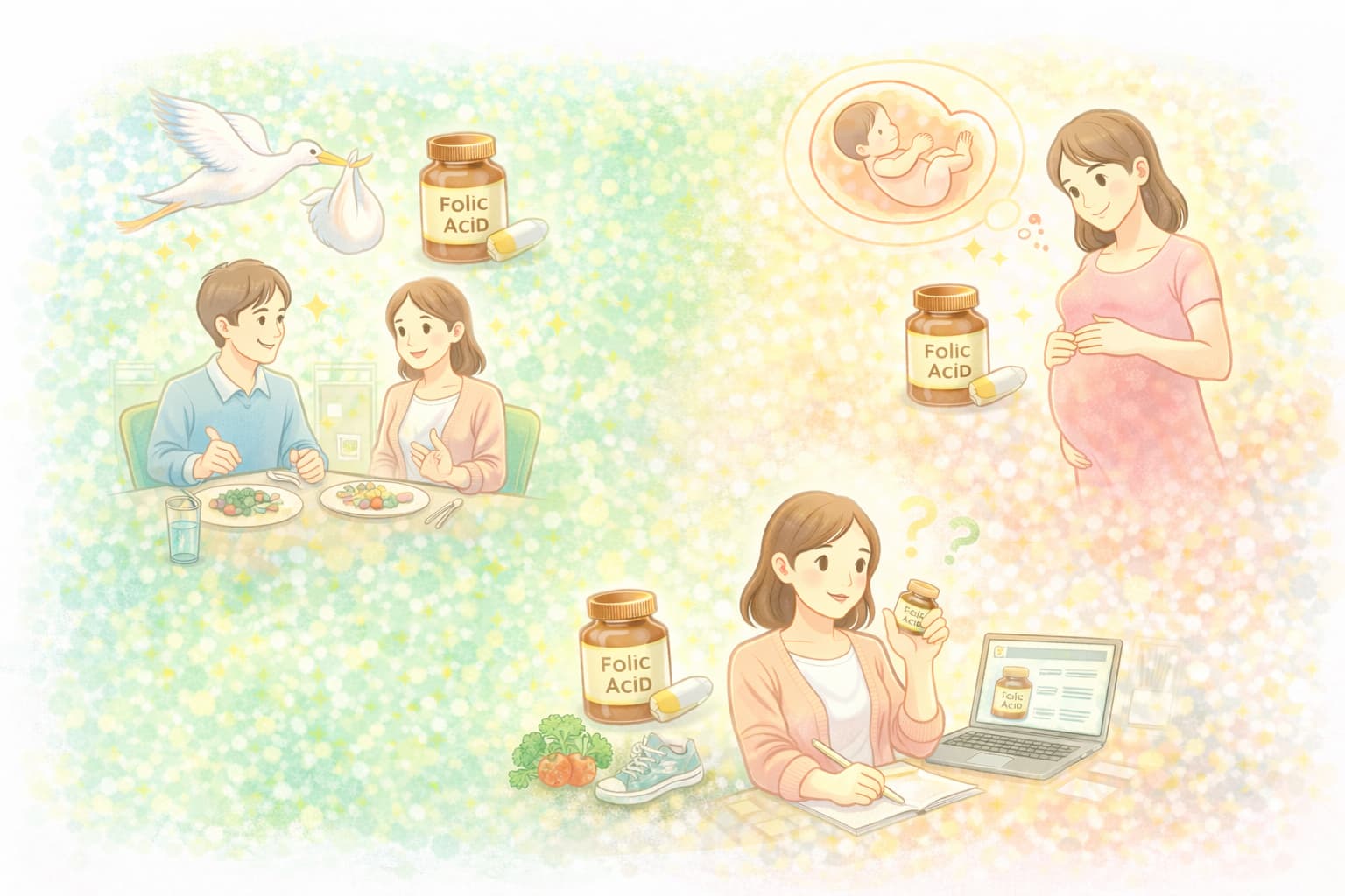 葉酸サプリに関する情報は、妊活、妊娠、出産などの流れに沿って語られることが多く、時系列で整理すると理解しやすくなります。